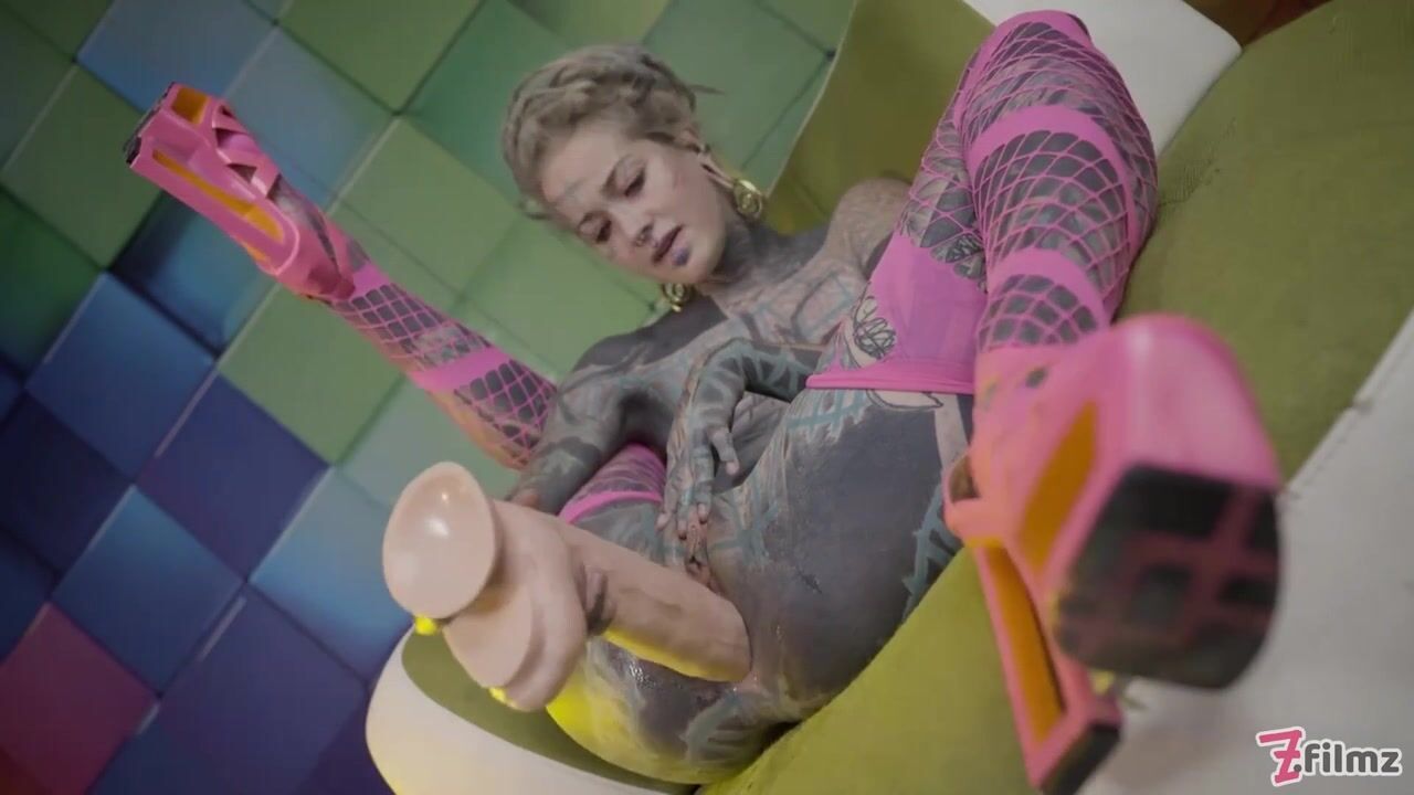 Heavily Tattooed Teen Anal Stretching