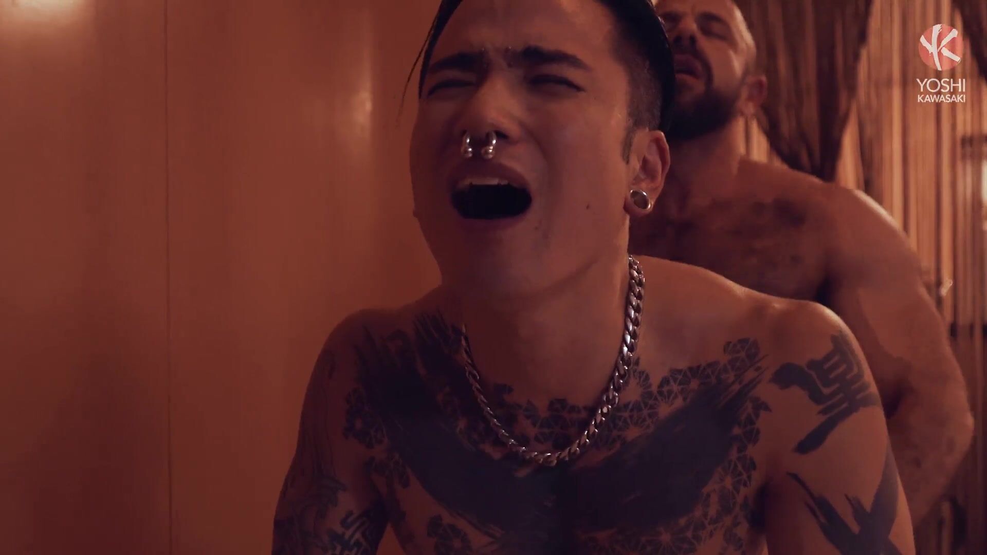 Yoshi gets a two-man "happy ending" to his muscle relaxer massage as Felipe continues. José Quevedo steps in to feed Yoshi his stiff cock, while Felipe eats out his ravenous ass. When Yoshi's sphincter relaxes, José pounds him from the front and behind. Now it's Felipe's turn to ram into that well-fucked hole. He breeds his wad deep inside. José takes his shot, jerking out a load onto that gaping hole then pushing it into Yoshi, as well. As he pulls out, standing back to admire Yoshi's throbbing asshole, a wad of cum from Yoshi's butt rockets out into the room like a guided missile.