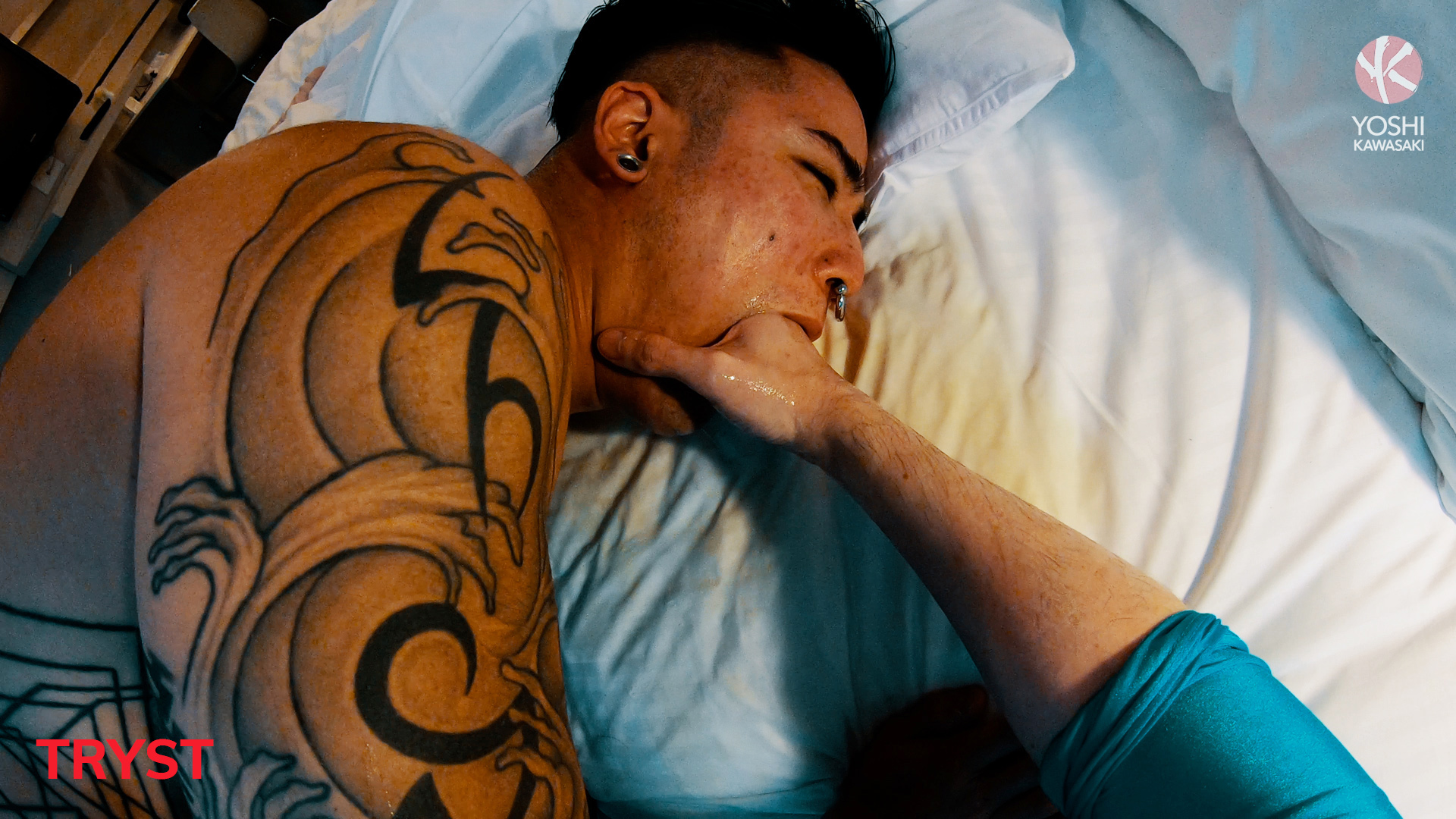 On a business trip away during the holidays, Yoshi checks into his hotel. But he can't think of work when his cock-starved hole is demanding attention. Horny, he plays with his hottest toys but that can't reach his itch. He invites a guy over to get the real thing. The visitor rips into Yoshi's underwear to give him a slick deep fist, then two at a time. Yoshi's toys get a real workout when the visitor drills them into Yoshi's mouth and insatiable ass, making him swallow from both ends. On the couch, Yoshi's gaping hole gets wrecked with fists and a double headed dildo. Watching the hungry cunt swallow everything he could throw into it, the visitor leaves happily. Yoshi shakes on the couch from the rapid-fire anal invasion.