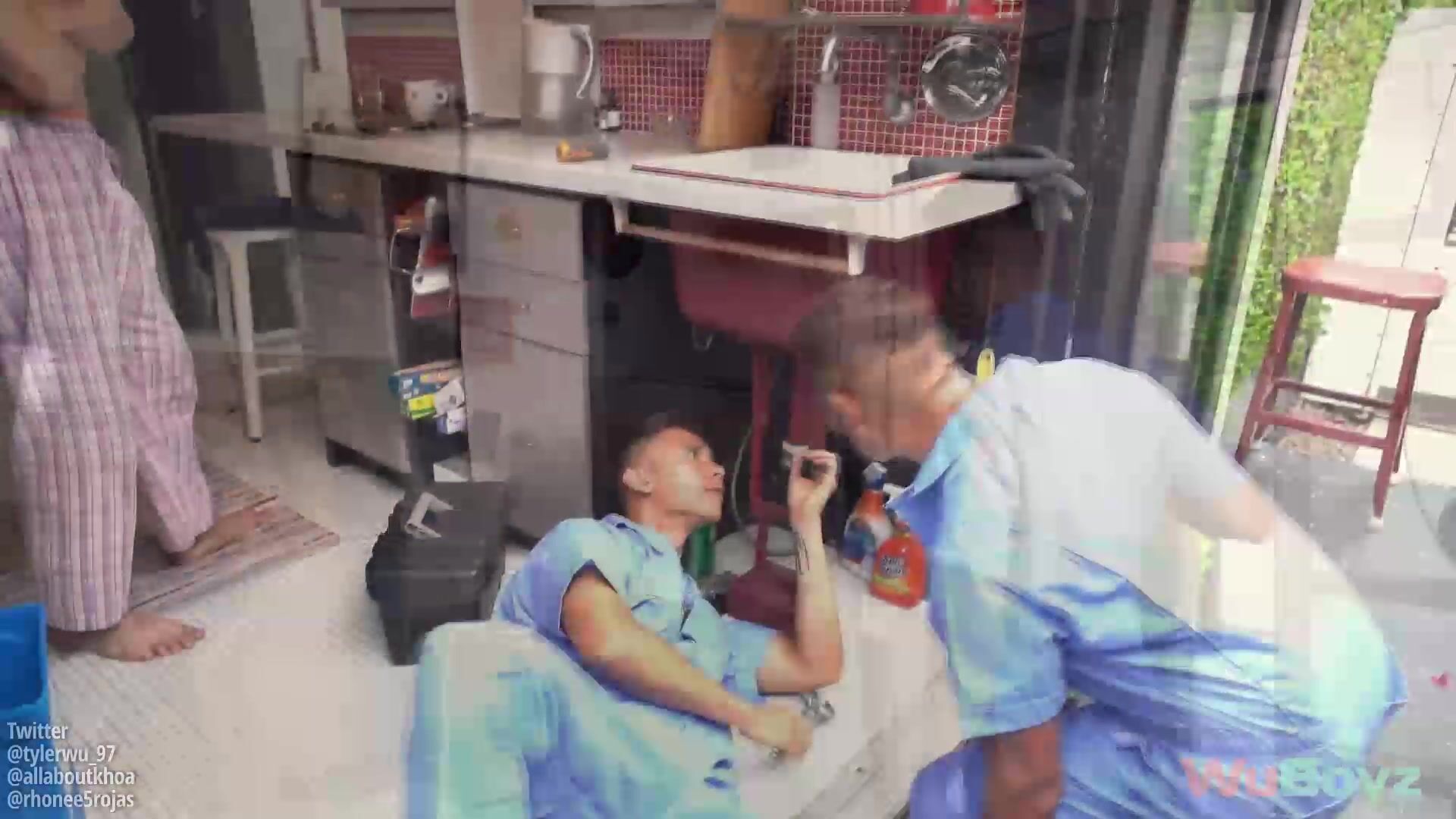 I was given a weekend treat by power couple Rhonee and Khoa. They were supposed to service my sink, but one thing led to another, and I got a full service instead. My sink is still broken, and I have Khoa's cum on my ass...