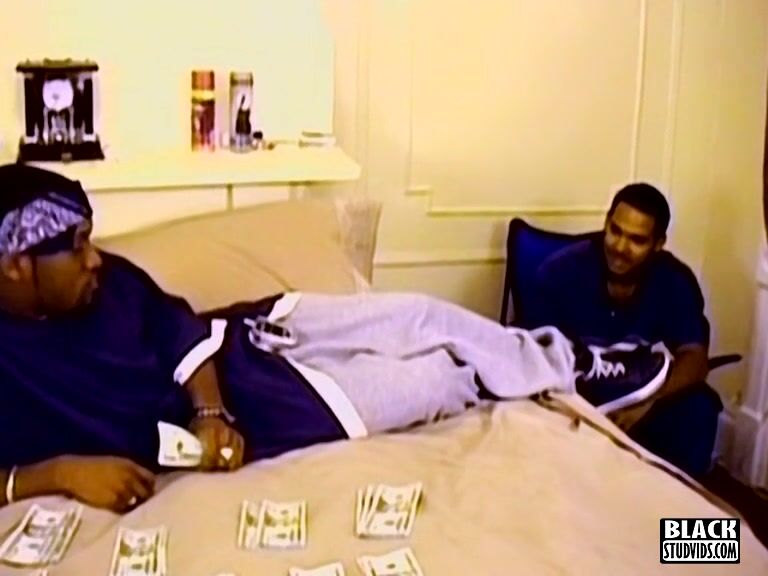 Horace and Kristopher are drug dealers, the boss counting cash on the bed while his underling apologizes for fucking up. Well, he has to pay a price, as it cost some money. His fee is sucking on his boss' huge black cock and getting fucked!