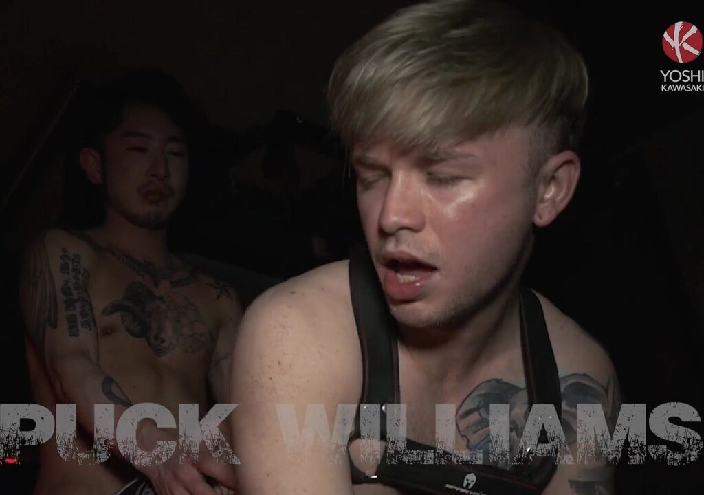 Puck Williams in a dark corner of the Tokyo's sleaziest sex club HAAARD, taking load after load. Today this dirty cumdump whore was targeted by 2 horny Asian men with throbbing cocks. Yoshi and Yusaku use him like a human fleshlight. But he still wants more...until he gets pregnant.