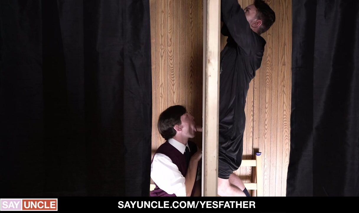 Pure Catholic boy Edward Terrant confesses that he’s had intimate relations with his girlfriend to nasty priest, Father Dale Kuda, and things quickly take a sexual turn. The dirty-minded priest cleanses the boy’s mind by digging his delicious dick deep in the boy’s gut and shooting a gooey load of semen.