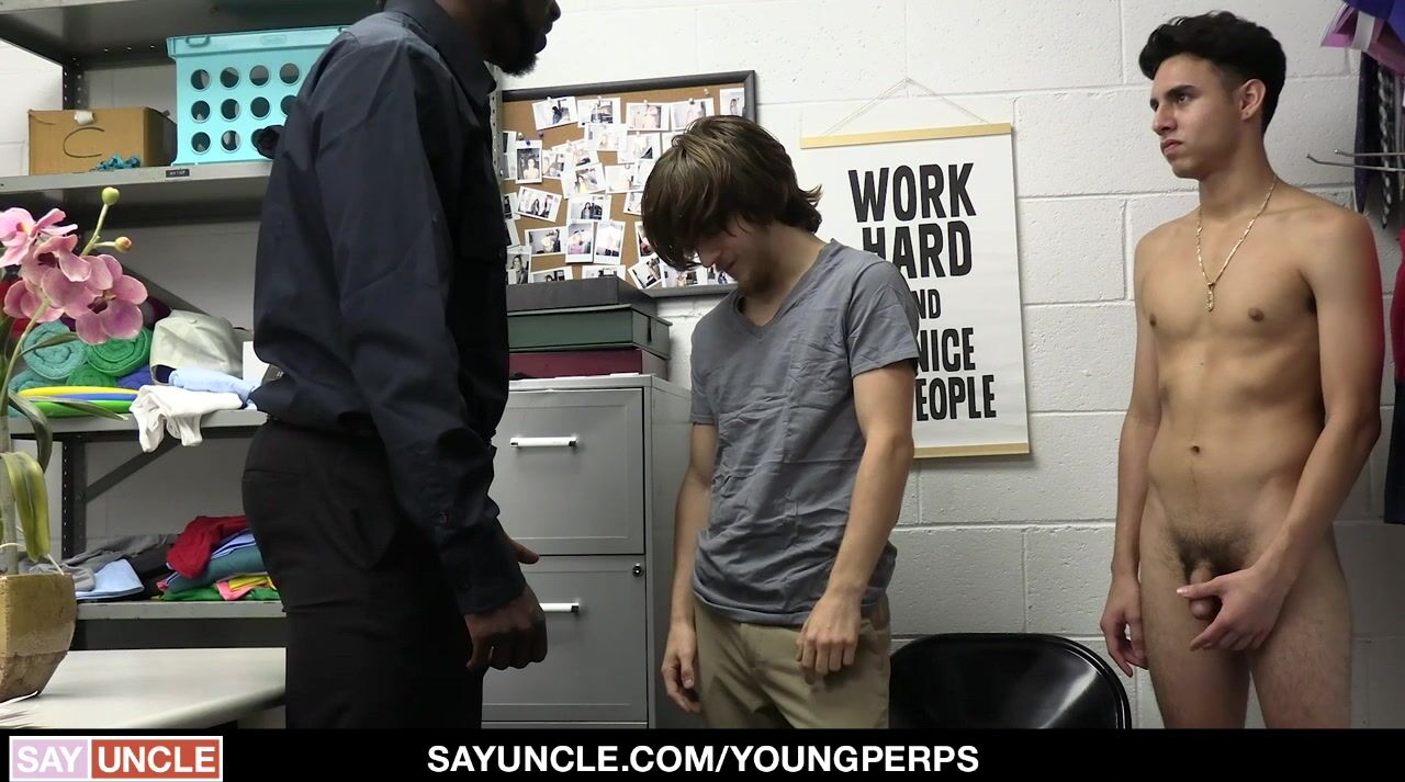 Mischievous bad boys Chase Rivers and Troy Harlow get caught stealing by strapping security guard Devin Trez, they get a dose of rock hard retribution. The sexy security guard penetrates the boy’s assholes one-by-one and dishes out a dripping load of punishment.