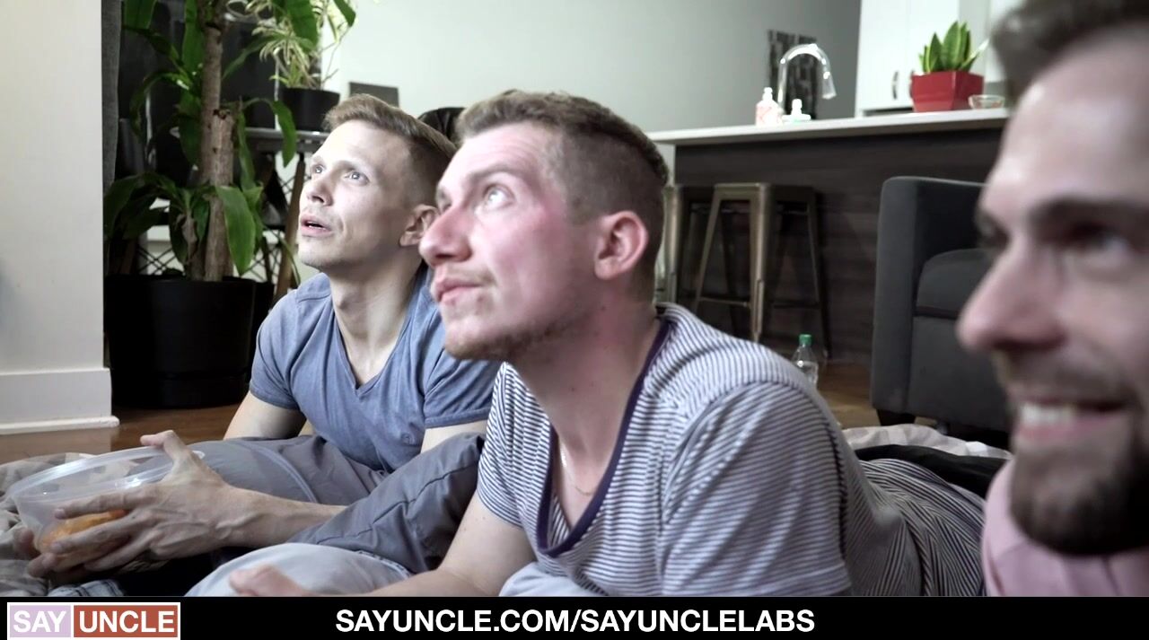 On this week’s SayUncle Labs, beautiful blonde twinks Ethan Chase and William Moore and their cute buddy Gabriel Clark learn that there is a secret movie that turns anyone who watches it gay. Before long, the straight boys are entranced by the silver screen and dive into some scorching hot barebacking threesome action, proving that the myth is true!