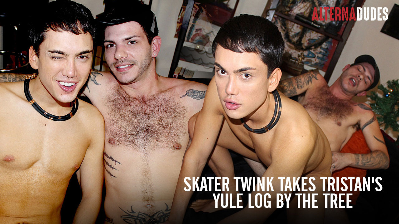 Skater Twink Takes Tristan's Yule Log by the Tree