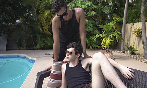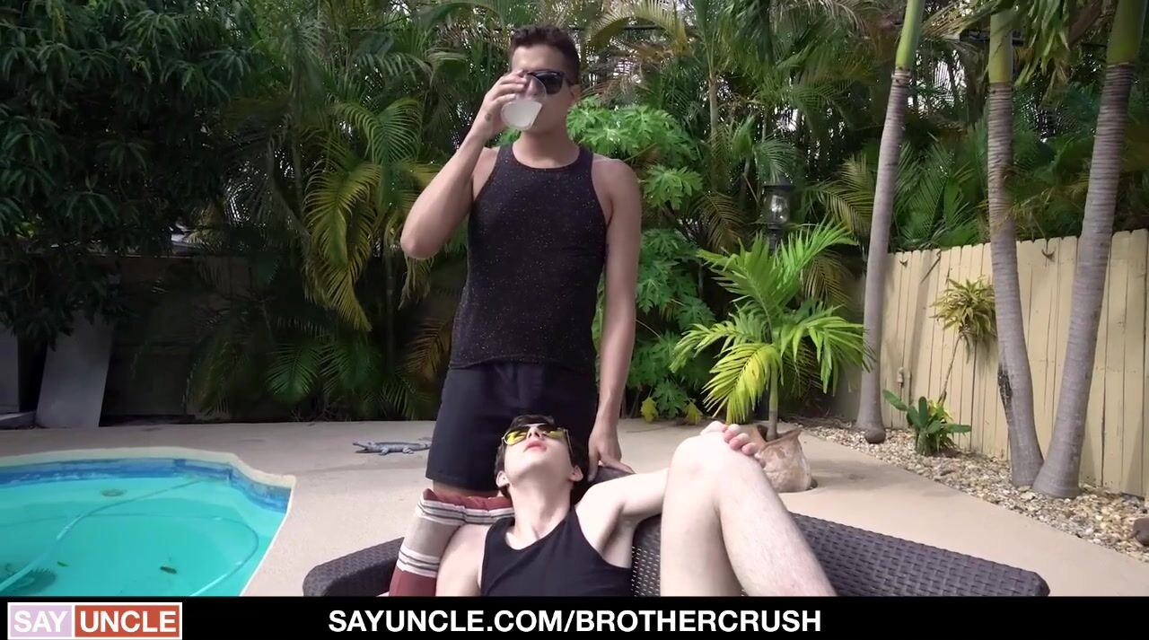 A chill day by the pool turns into a hot and intimate encounter when gorgeous Johnny Bandera makes a raunchy advance towards his cute twink younger stepbrother, Dakota Lovell. The little guy tastes his older stepbrother’s veiny dick and then bends over to experience the full girth of his bulging rod.