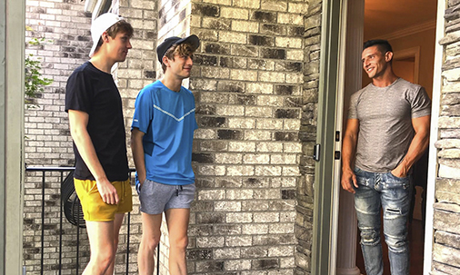 A couple of cute boys, Jesse Bolton and Jack Bailey, are always a welcome sight at horny Jax Thirio’s house. After a hard day’s work in the garden, the boys are invited inside to enjoy a raw anal threesome with the pervy guy, and the fun ends in a creamy mess!