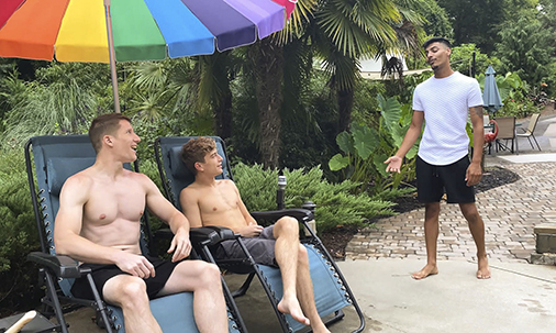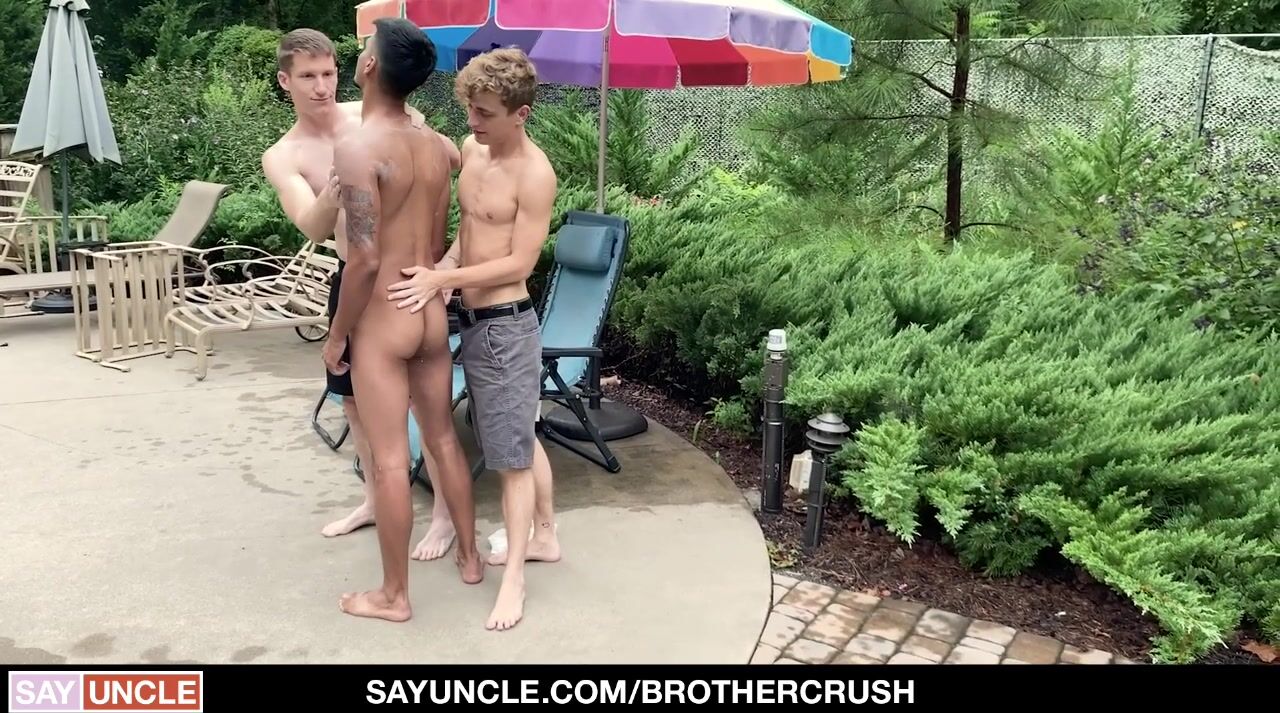 This week on BrotherCrush, it’s a whole stepfamily affair as gorgeous stepbrothers Aiden Asher and Jesse Bolton seduce their stiff-cocked stepcousin by the pool. They spread some lotion on the toned boy’s body and go balls deep in an orgasmic anal threesome.