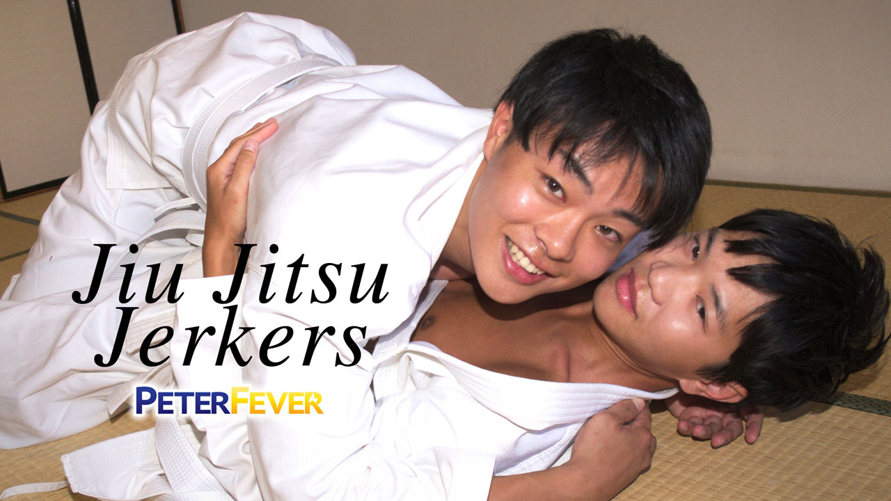 Fresh from a martial arts training bout, Higaken and Kaoru are lying on the tatami mat, already horned up. These Japanese PeterFever East studs are lean, tan and ready to rumble. Kaoru slides down the gathered waist of Higaken's crisp white pants and helps himself to a heapin' helpin' of his tall buddy's stiff member. Higaken writhes in erotic ecstasy as Kaoru gives him a hot juicy suck, then tries a mouthful of Kaoru's thick stiffy. Kaoru's been in the summer sun, and has a sexy tanline barely outlining his crotch and ass.nnHigaken slathers a gob of clear lube into his hand and works a slick finger into Kaoru. The lean young athlete pokes up his ass to welcome the anal invasion, groans with excitement. One then two fingers turn to a big bare cock as Higaken pumps bareback into him. With both Asian hotties still wearing their braided supporters, they grind dick into butthole deep and hard. Kaoru stands to brace against the wall and Higaken lets loose plowing in. His nuts slap against Kaoru's tight little butt cheeks and they're ready to pump out a hefty splatter. Higaken grabs Kaoru by the hip bones and goes for broke. He pulls out in the nick of time to spray Kaoru's face with a creamy wad. Kaoru is so worked up, it's only a second before he's shooting out his own sticky reward.