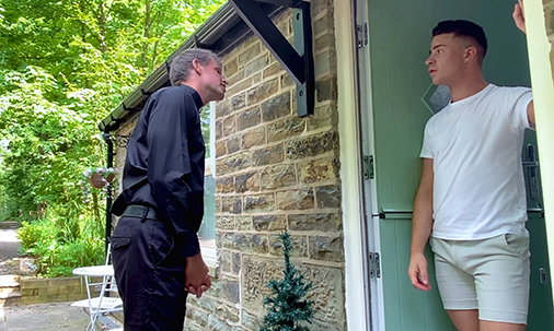 Father Keresford uses his years of experience to conclude that the only way to dispel Kendrick’s sexual urges is to indulge them completely. He barebacks the boy slowly and passionately on the couch, filling him with orgasmic pleasure.