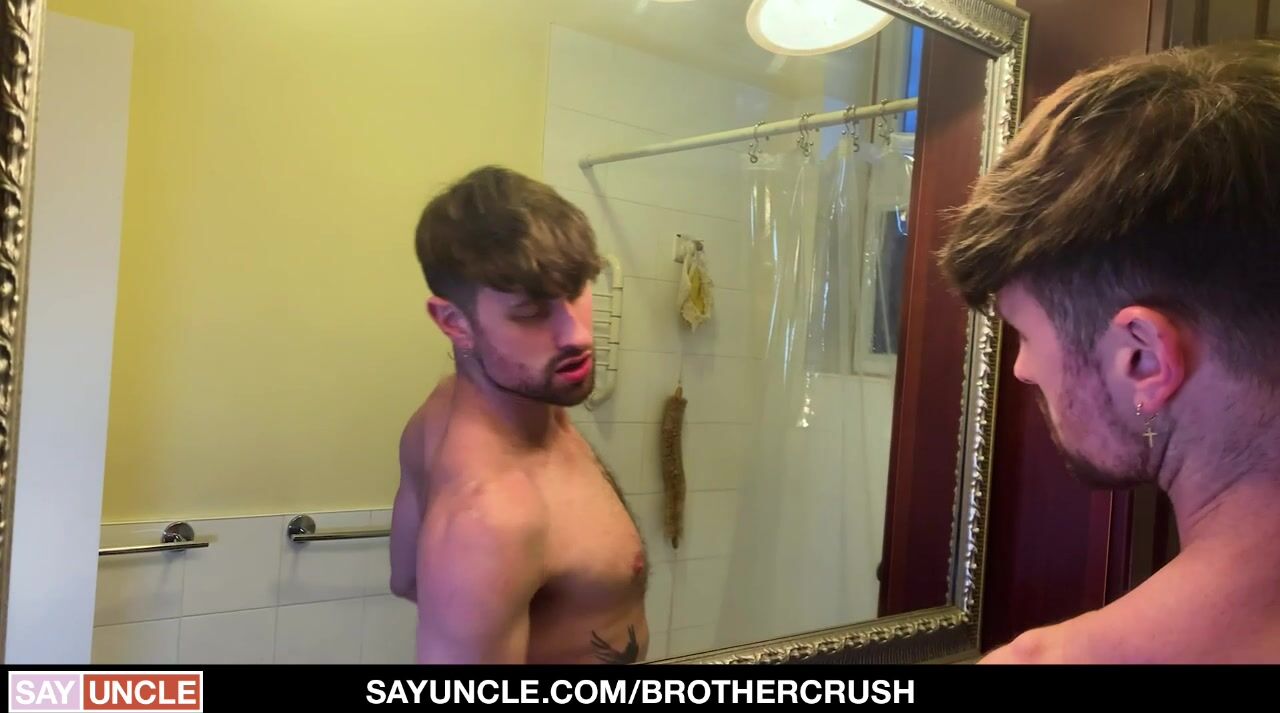 Ethan Chase is shocked to find his stepbrother, Drew Dixon, staring at his naked body while water streams down his back. The pervy older guy moans as the boy plows his delicious bussy bareback.