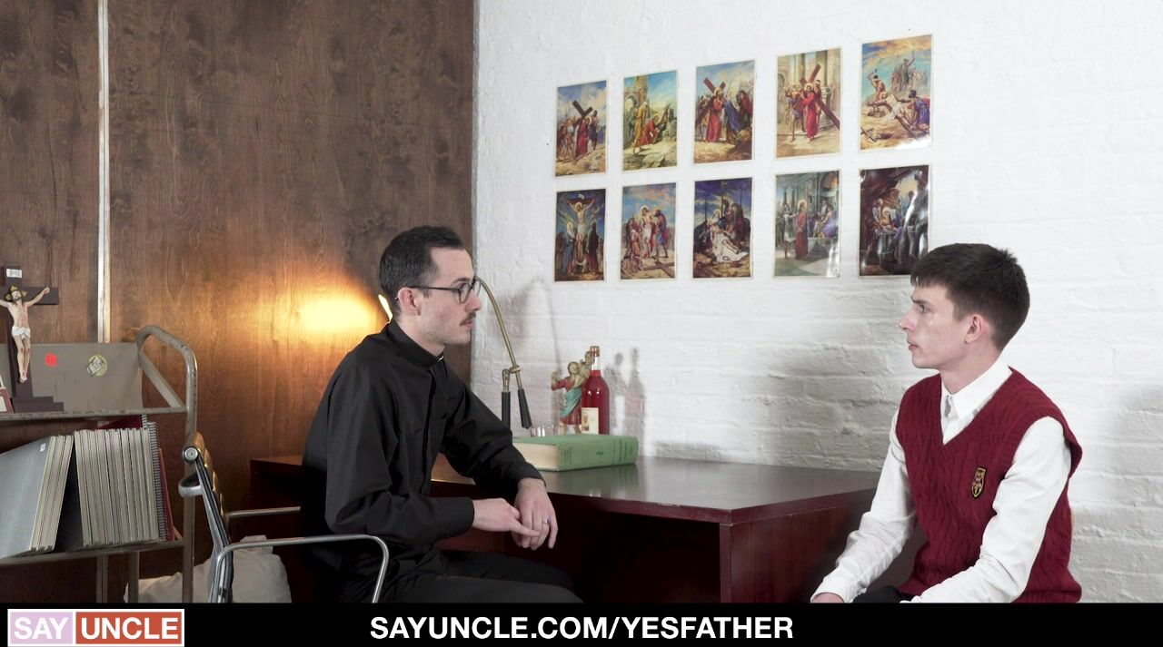 If word of Father Fiore and Felix O’Dair’s lusty meetings gets out beyond the walls of St. Patrick’s Catholic School, it could spell the priest’s ruin. To keep the boy quiet, the nasty priest pushes him against his desk and drills his tight rim, loosening his sphincter with every stroke.
