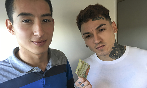 To get these Latino boys to drop the innocent act, our cameraman flashes them some cash and asks them to follow him home for a couple refreshments. There, he watches them suck cock, and delivers a dollop of hot leche from the tip of his swollen cock.