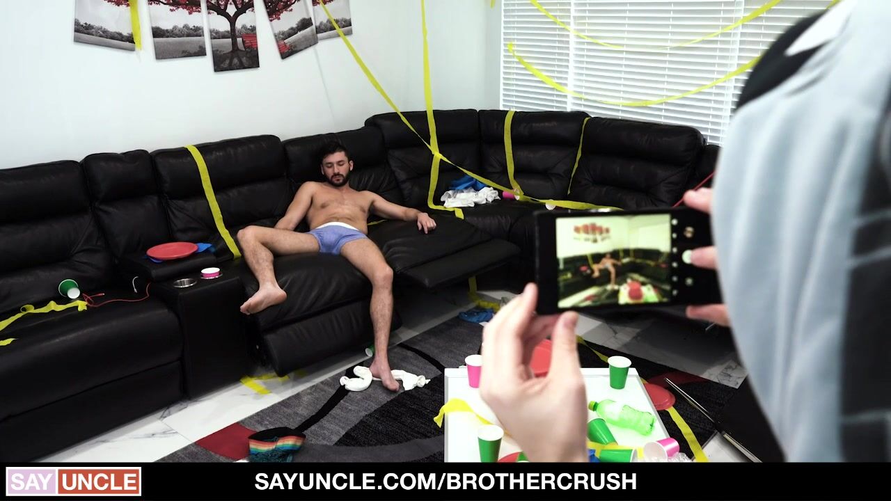 Dakota Lovell isn’t going to let his older stepbrother, Scott Demarco, get away with throwing a party while their parents are out of town. To make sure the snitch doesn’t squeal, the older boy lets the kid top him, offering his bubble butt up for a raw anal pounding!