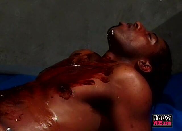 Michael Rome and Bobcat prove big time here that they're pretty tough guys, fighting for the right to fuck the other via some grappling. The lond haired stud wins and he takes his prize with pride after some whipped cream spraying!