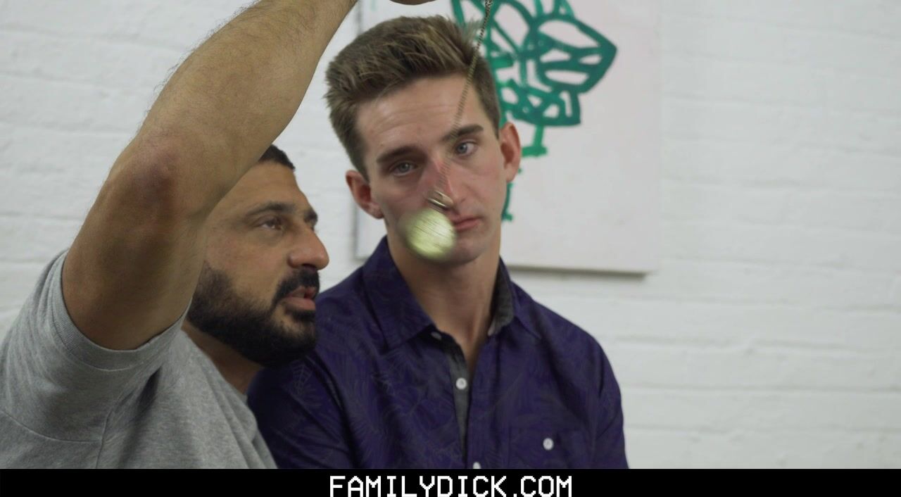 Curious Ashton Garner stumbles upon an old pocket watch that his stepdad, Marco Napoli, uses for a very special technique that makes his subjects highly suggestible. The old man gives his boy a lesson by using the technique on himself! Then, the boy commands his stepdad to pound his asshole raw and cover him in a coat of semen.