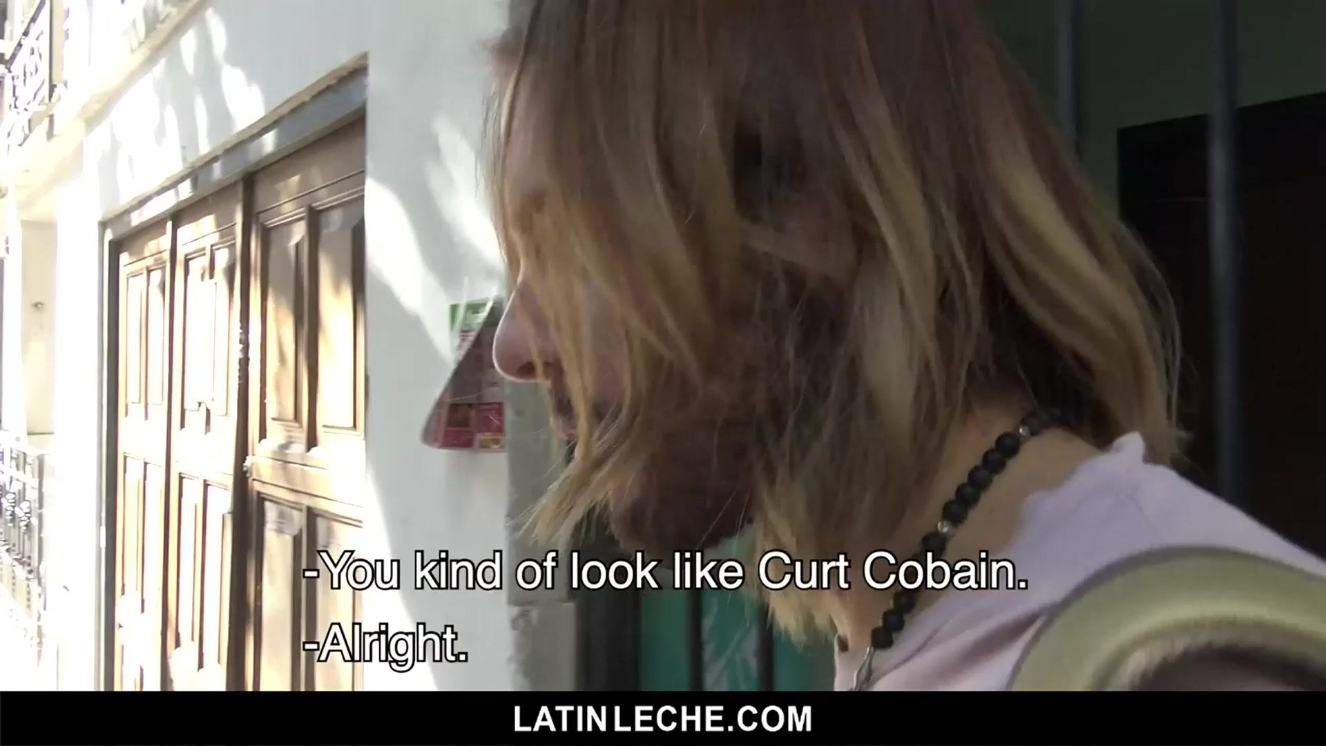 When our cameraman comes across a handsome guy who looks just like Kurt Cobain, he offers him some cash for a little play. The rockstar doppelganger is happy to oblige, sucking and slobbering on our tricksters dick for some pesos. Then, he swallows a load of warm, creamy leche for his grand finale!