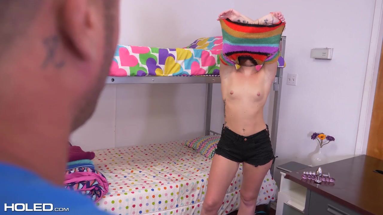 Joey gets caught snooping through her roommates belongings. He asks for an anal show to keep quiet.