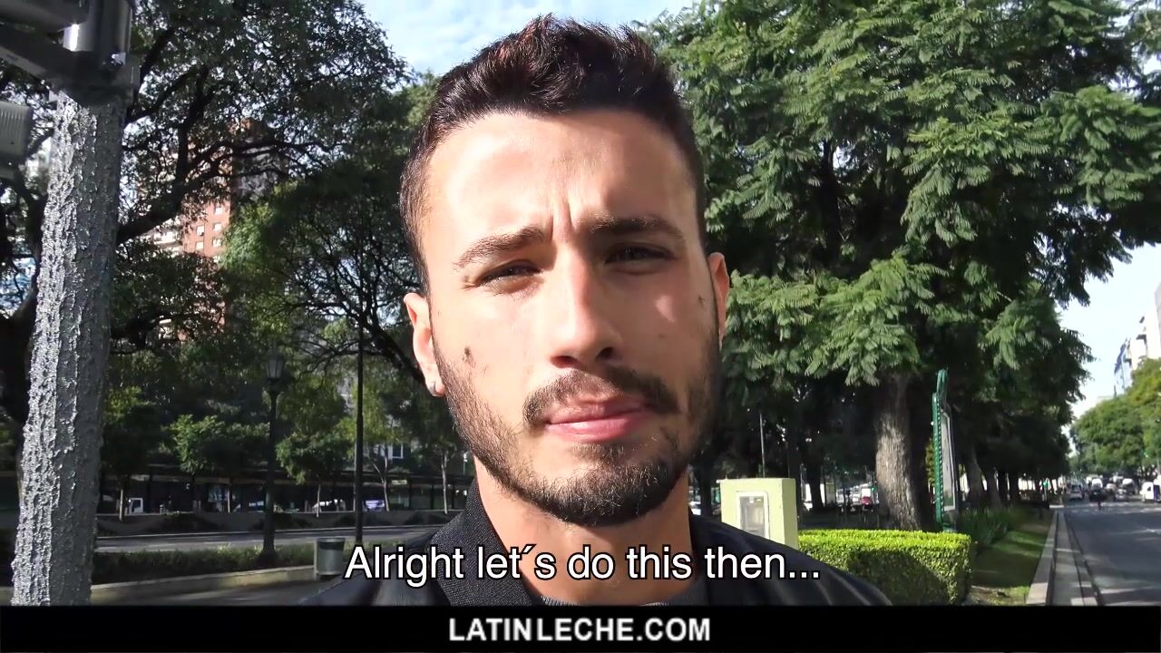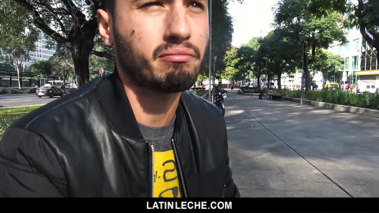 Fresh out of Brazil, this week’s LatinLeche brings you a stunning man who’s just moved to Buenos Aires for work. When our cameraman spotted this sexy Brazilian sitting on a bench, he was immediately lured in by his big lips, outrageously sexy facial hair, and emerald green eyes. Desperate for money, this handsome hunk agrees to jerk off for us in exchange for some cash to cover his hotel room for the evening… but he doesn’t realize what he's getting into! Watch as he strokes a big uncut cock, sucks dick for the first time, and takes it raw and hard up the ass. This Brazilian stud gets railed from behind and services our cameraman up until he squirts his leche all over this beautiful boy’s face. It’s clear that this new resident loved making some extra cash, but his face tells us he enjoyed the mouthful of cum even more!