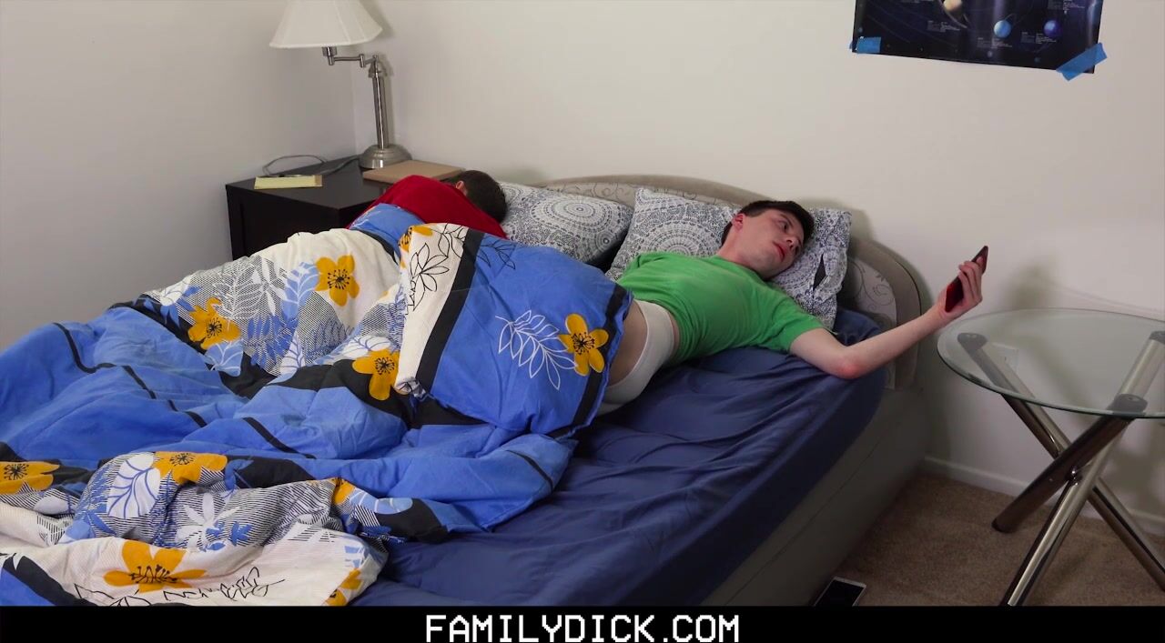 It can be difficult having to share a bed with your cousin, especially when you’re desperate to jerk off. Not wanting to wake up his cousin, he slips into his step dad’s room to find him sleeping naked… as he always does. Slipping into bed, his horny daddy notices his rock hard cock and knows the boy needs a good hard fuck. The young boy sucks his daddy’s cock while the bearded man devours his tight, smooth hole, all before slipping his huge dick deep inside. Forgetting his sleeping nephew in the next room, Jacob pounds his boy’s hole, waking the young man. The curious cousin walks in to find his cousin and uncle fucking hard and eagerly joins in!