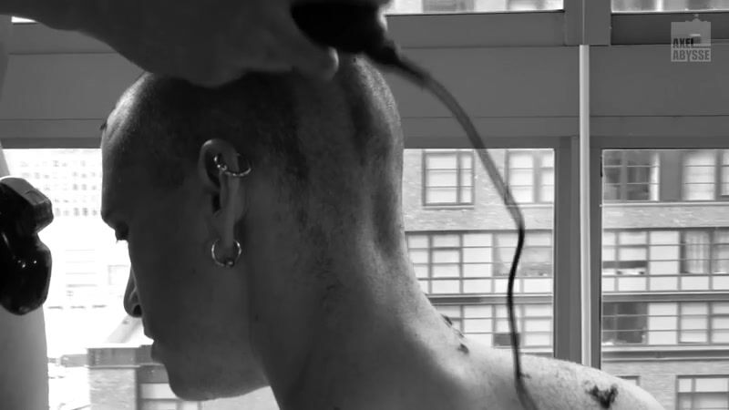 Cagedjock condemned himself years ago, locking his useless dick in a chastity device. The weaker his tool gets, the stronger becomes his mind and body... For his first encounter with Axel, his sadistic side takes over, proving the Alpha Male isn't what we could expect. Hands tied, head shaved and face fucked, Axel leaks on the floor as he asks for more, until exhausted.