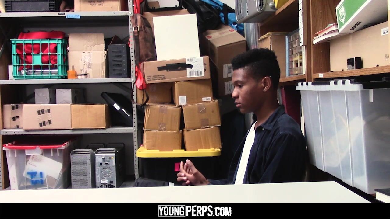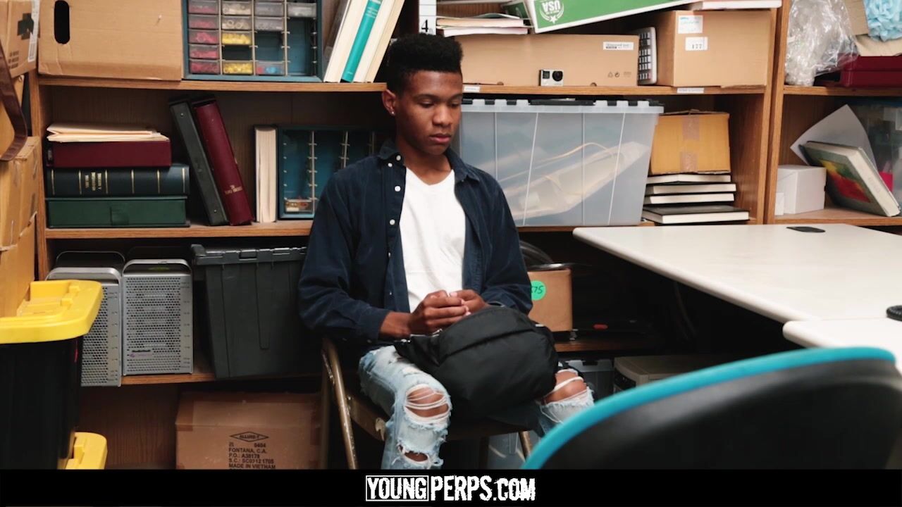 A young kid went into a bookstore around closing time hoping to go unnoticed by the staff. While the clerks were busy getting ready to leave, he put a book on BDSM bottoming into his backpack, only to be spotted by the watchful security guard. He’s taken into the backroom to confess his crime and return the book, but the boy does not cooperate. The horny officer sees an opportunity to have some after-hours fun and gives the kid a proposition: bottom for him like in the book or get hauled off by the cops.