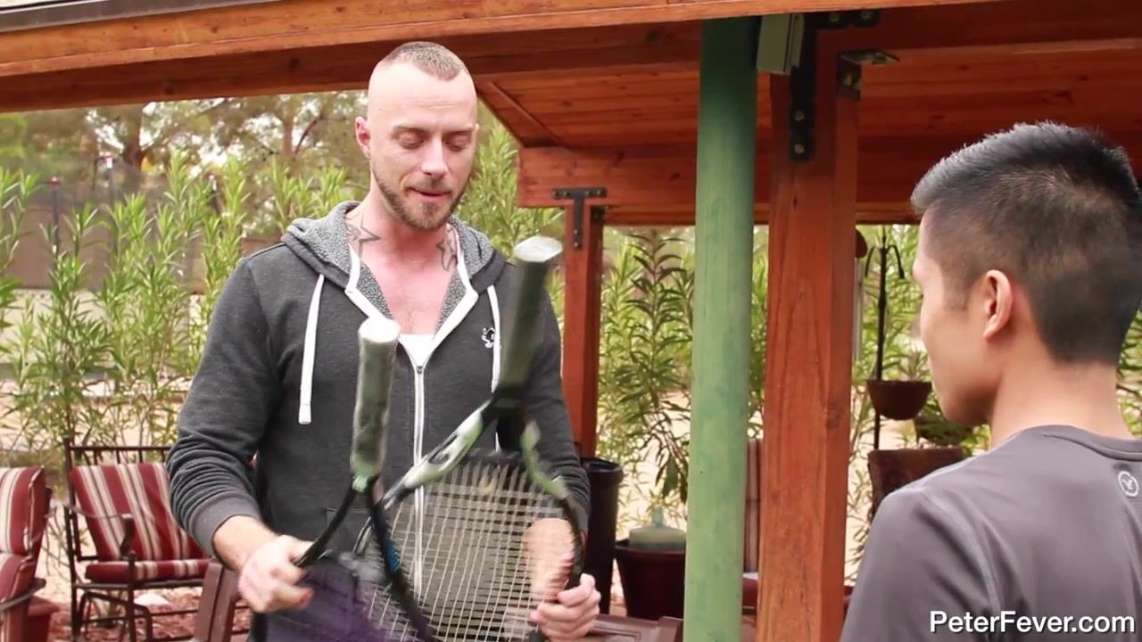 I decided to use an app to hookup wit this guy Jessie. Online he looked hot, but in person is was even better, Jessie Colter was rugged and handsome. He decided to teach me tennis, but I wasn't very good; I couldn't even hit the ball back to him.He offered to help me perfect my swing. As he came in from behind, my ass was pressed up against his hard cock. I was trying to concentrate on my swing, but all I could think about was getting fucked.Watch Robin take a long, hard private lesson from Jessie Colter in the Novella Series S4E1 premiere "Tennis Match 30-Love".