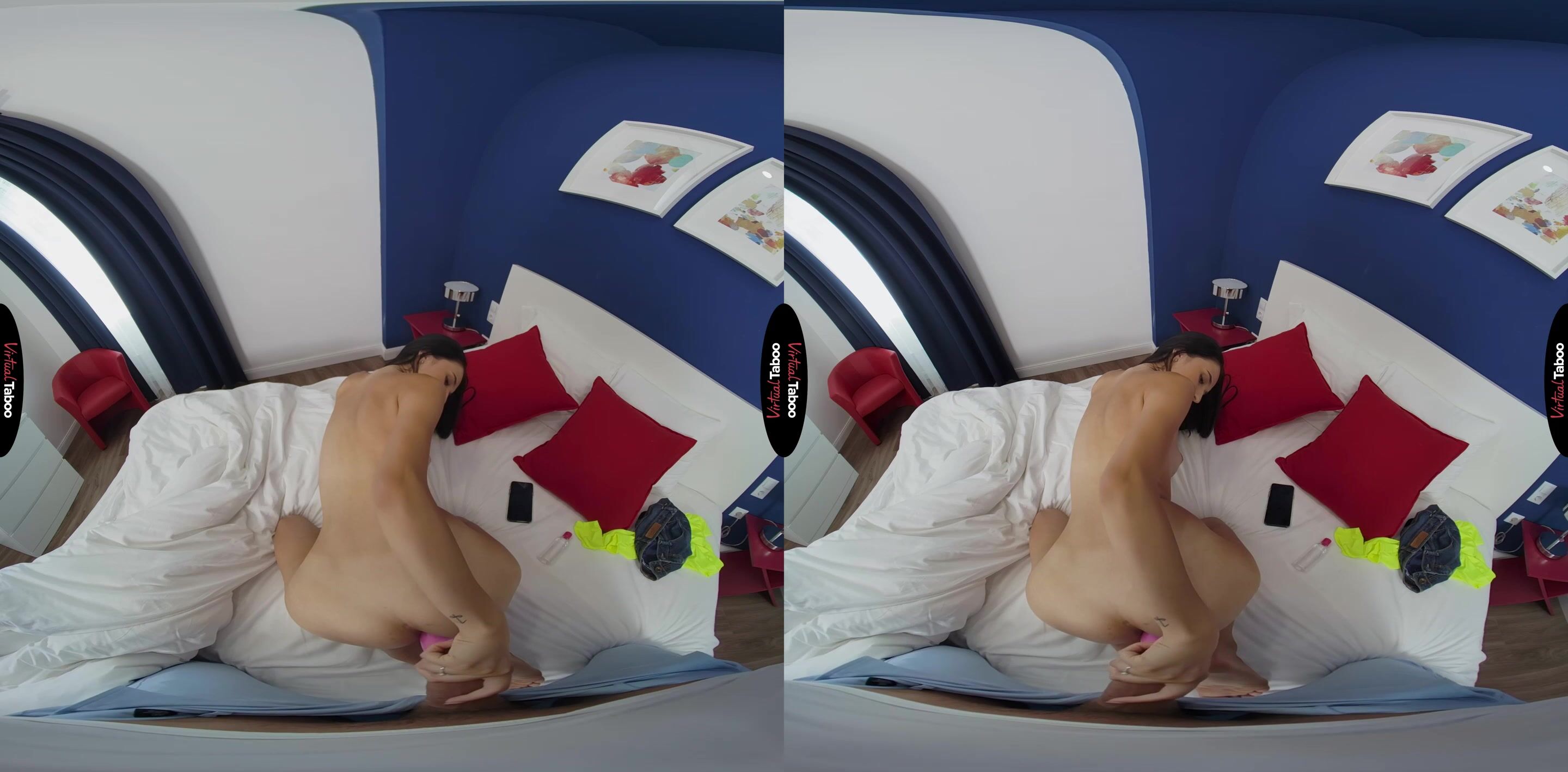 Alyssa Bounty finds herself all alone one afternoon. Her boyfriend is out of the house and she has decided to take advantage of the situation. She has never tried anal sex, but wants to surprise her boyfriend by giving him her anal virginity. She knows he watched a lot of an anal scenes on his VR Headset and wants to make it special. Trying out a new toy, she practices. It seems too big to fit in such a tight hole, but she carefully slides it deeper and finds that she loves how it feels. Just as it starts to feel really good, her boyfriend’s best friend stops by looking for him. You see her fucking her tight ass with the vibrator and come into the room. She is embarrassed, but also so turned on that she has to have your cock. She can’t wait for her boyfriend and asks you to help her finish her anal training. You know that he shouldn’t but your cock is throbbing and feels so good in your wet mouth. She gets on all fours and you fuck her pussy from behind. Alyssa loves your big dick, but she needs to complete her anal lesson and begs you to put it in her butt. You goe slowly at first, letting her feel every inch as she opens up. Enjoy a first class VR fantasy as she rides you and even though is much bigger than her boyfriend, Alyssa is proud that she takes it all in her tight asshole. She almost feels guilty that her boyfriend won’t be the first one in her ass, but mostly she can’t wait to fuck his big-dicked best friend again.