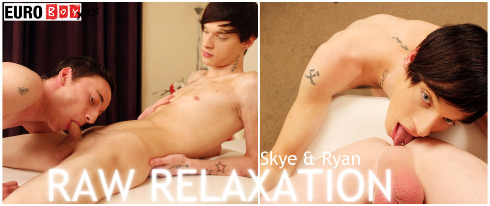 How do we find such skinny, pale young lads with such freakish big, uncut dicks - we do our best!? Skye is enjoying a massage and Ryan’s enjoying having the slender lad at his mercy - but those curious twink fingers are starting to wander and by the bulge under the towel it looks like Skye’s enjoying himself. Thats a fucking big dick, and its gonna be a tight squeeze, Skye’s gonna be sitting on a rubber ring after this shoot. That uncut, flesh stalk is rock hard and poor Skye’s moaning somewhere between pleasure and pain. Ryan slides deep deep into his smooth, hairless hole - bareback - and we have to stop filming straight away, the cute lads ready to burst, in the hot, muscle fuck-hole. We take it easy ( for which Skye is grateful) But they’re soon pumping up a sweaty, spunky storm, and that holes getting pretty sloppy, And of course just wait for this juicy Euroboy cum shots, Lip smackin’ yum!