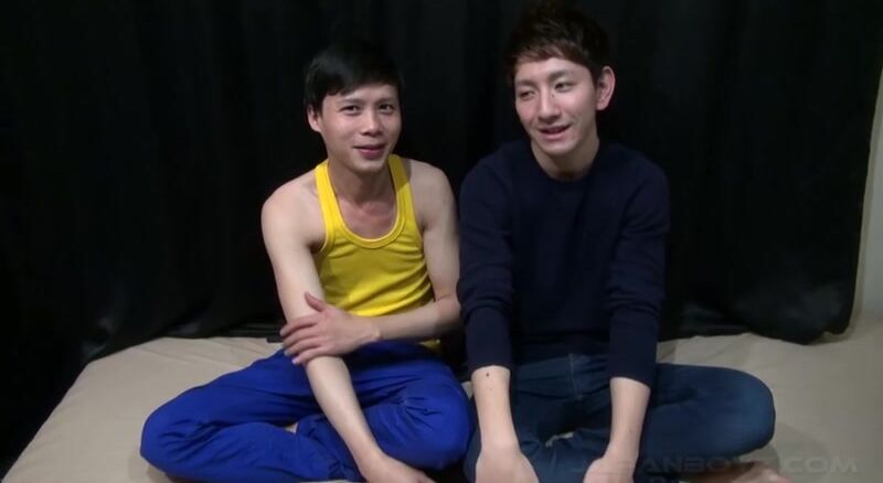 Khan in yellow, and Seki in blue, are a bit giggly today; dick can do that to a boy. Chatting about their "work," Khan is quite impressed with his partner's abilities. Wanting to "feel" for himself, I think both these JapanBoyz.com models are going to enjoy the pairing. Khan doesn't waste time in unleashing the "leopard" in the room; he is a grower. While kissing up and down the boy, Khan's hair brushes every inch of Seki's pristine skin. Being "frenulum friendly," Khan sucks Seki's crown and slides off the underwear. Getting a good taste of his partner's dick, Khan's lips move north; the tongue lashing produces a nice coating of precum. Trading off, Seki now undresses Khan and begins to caress; "working" his knee, Khan keeps rubbing Seki's dick. Sucking on the nipples, Seki then goes south and is given a nice face-fuck "welcum." Getting the lube, Khan opens up Seki's hole, first with his fingers and then with his dick. We'll give you a look, but "cum" back for the full "taste."