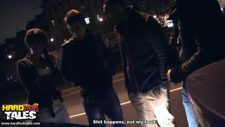 A Russian chick drove her car into the back of three guys and paid for the accident with her ass. The guys decided to collect the debt in kind and gangbanged her in the pussy and ass. The bitch moaned with pleasure.