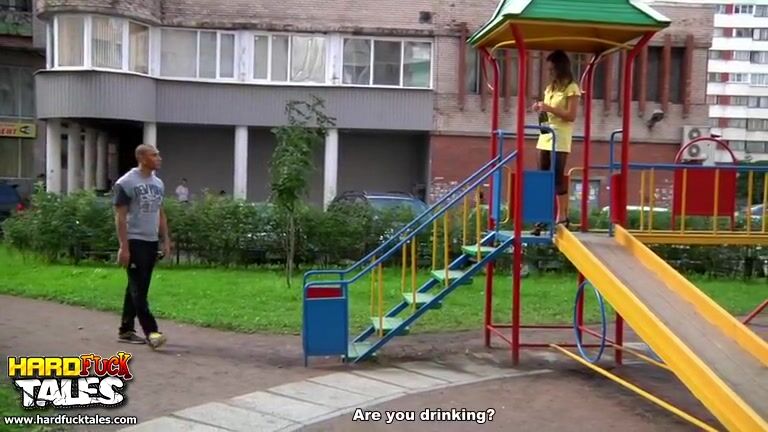 The Russian beauty wanted to drink alone on the playground, but the Russian black guy offered another option. Fucking a drunk girl with three cocks was fun and enjoyable.