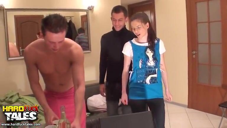 Russian students came to the apartment to celebrate the exam, but one couple wanted to retire to the bedroom for a quickie. It's not fair to the other drunks at the party, so they came to the bedroom to restore justice. The girl doesn't mind being passed around, and the guy even enjoys the fact that his girlfriend is in great demand.