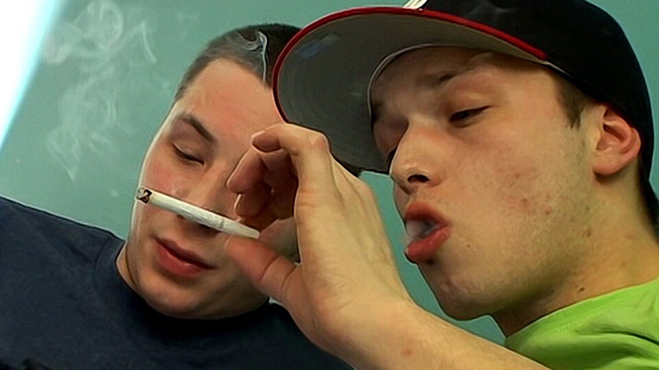 Best buds chainsmoke and check out some porn together. Before long they swap blowjobs and get into some hot and heavy smoke sex!