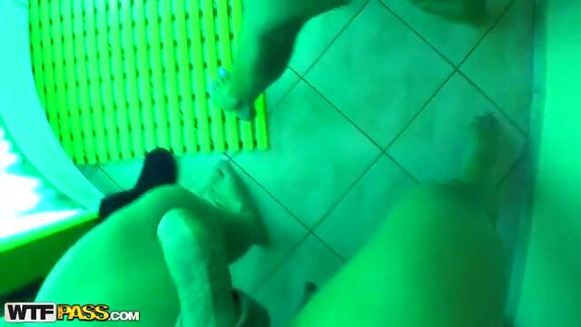 Couple anal banging in solarium