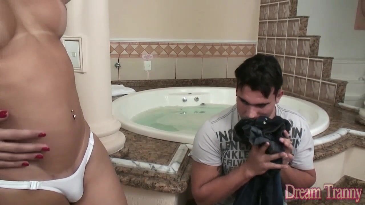 Shemale whore turs her boyfriend on and fucks his tight asshole so brutally.