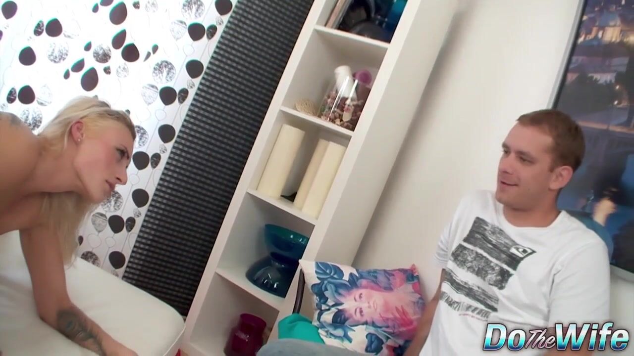 Cock hungry blond wife takes a fat dick in her mouth then takes it deep inside her asshole and gets fucked in many positions and makes her husband watch her