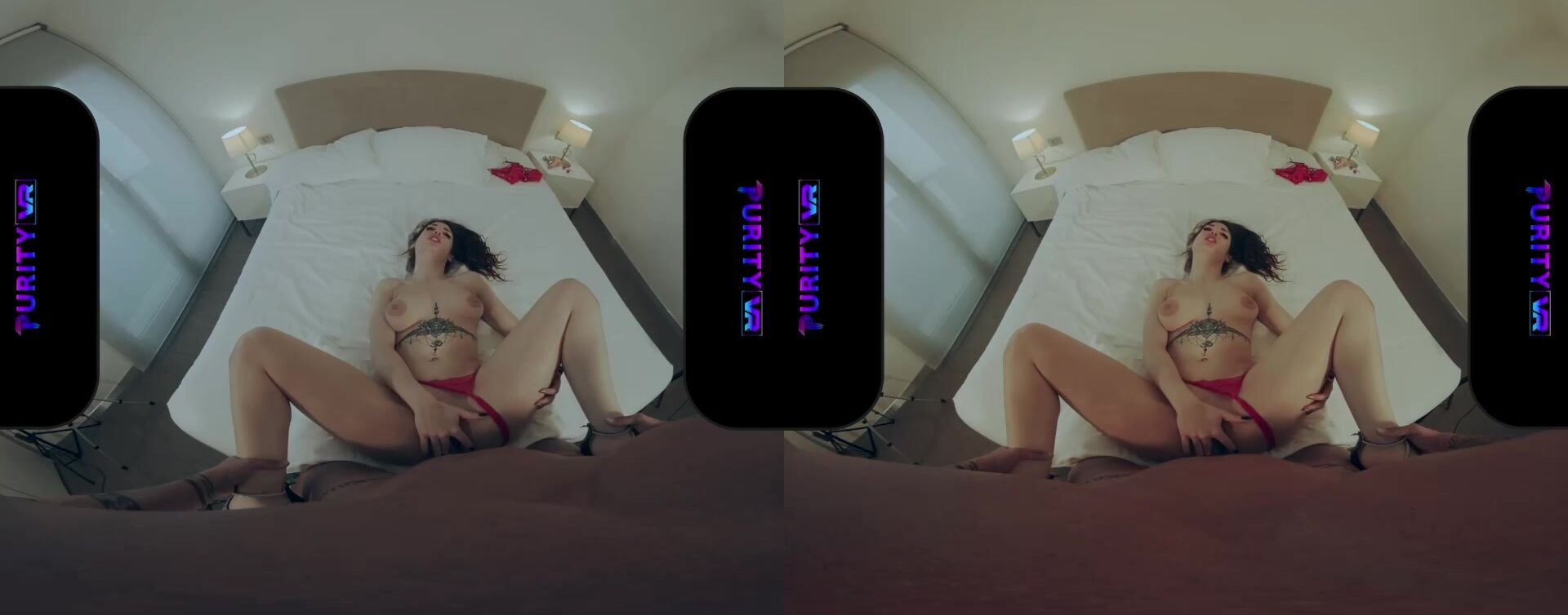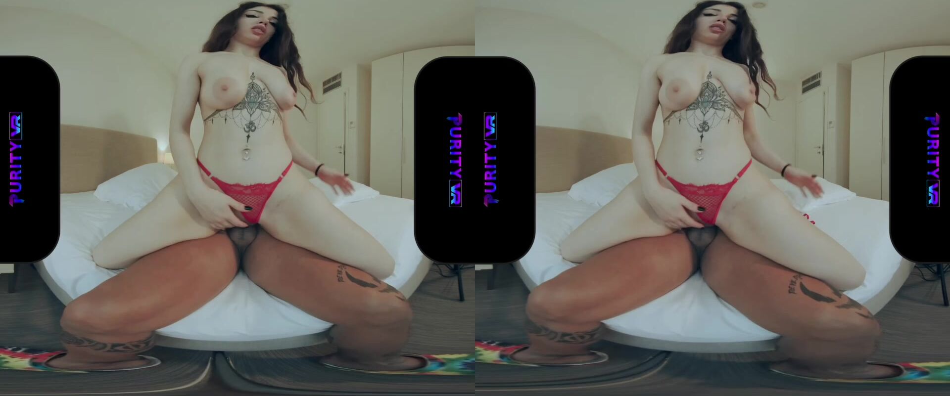 Dressed in her sexy red lingerie and all her tattoos, Mesmeratrixxx is on the bed ready to enjoy Andrew Goses dick. She gets on all fours to show the buttplug up her ass and pulls out the balls inside her bald pussy. Then she straddles Andrew reverse cowgirl so he can finger her twat and then Mesmeratrixxx just has to suck his cock. After that she slides his thick pole into her snatch and still ha