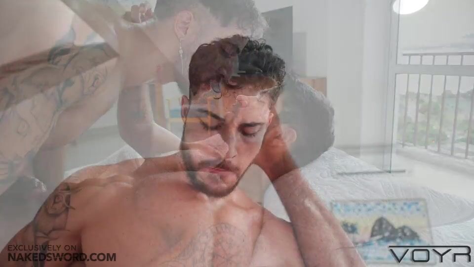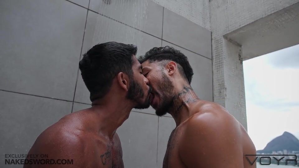 Just the sight of muscular stud Gael showering on a balcony in Brazil has Markin Wolf’s pulsing hard-on aching to escape his black briefs. The two handsome men strike an instant connection the moment their eyes meet, spurring Markin to make his way over to the dripping wet Gael. Moving inside the loft apartment, the big-dicked porn stars begin sucking and rimming each other with a feverish eagerness. Gael 69s with Markin and teases his hole before finally sliding his lubed-up meat into Markin’s ass while simultaneously licking the tip of his mate’s rock-solid dick. Then, it’s Gael’s turn to bottom as the two flip-fuckers breathlessly swap positions and bareback each other all over the sun-drenched sheets. With Markin’s huge rod deep inside Gael’s perfectly tight hole, the hung vers top pulls out to cum all over Gael’s furry crack – only after bending down to lick up the loose spunk that came shooting out of Gael’s deliciously thick cock.