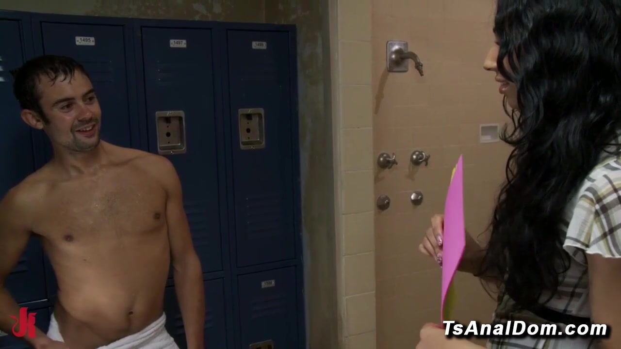 Trans Honey sneaks into the mens locker room and discovers her hot college crush jerking his big dick in the shower She quietly watches then surprises him giving him a deepthroat blowjob before riding his ass for a huge cumshot facial