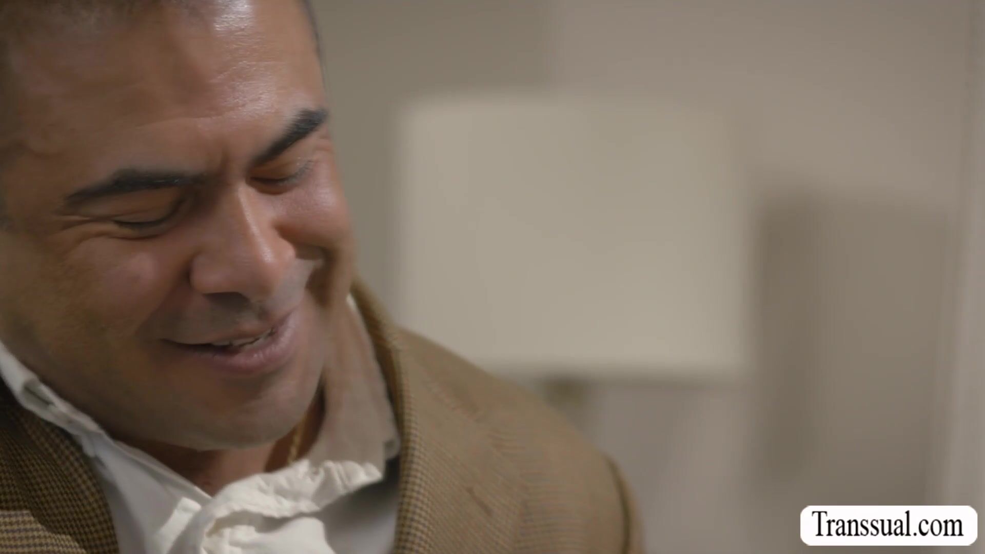Stunning TS femboy with flowing red hair and rock-hard cock starts in lingerie, teasing the tattooed muscular stud in a suit. Soon clothes fly off for intense oral worship, deep kissing and savage fucking in missionary and doggy. Check out Transsual.com and get a discount!