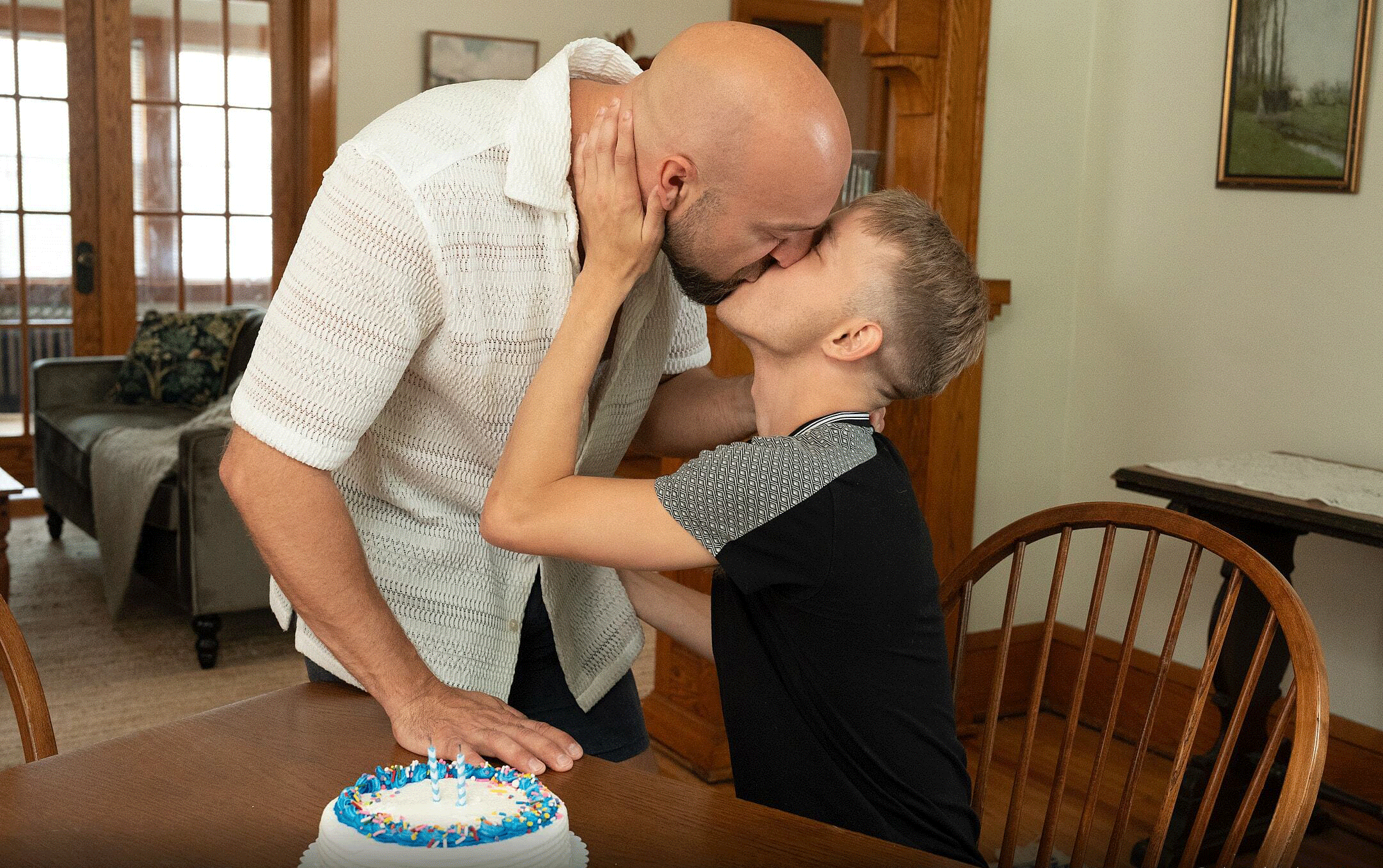 Its been another year.I wanted to surprise Noah with a birthday cake,so I brought the cake in while singing Happy Birthday and lighting two candles.Go to Gaycests.net for the full video of this and more related.