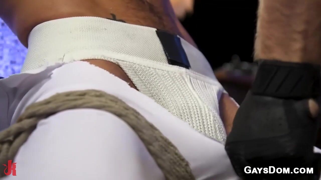 Logan Stevens captures Casey Everett after practice locks him in a dark room blindfolds and ropes his knees He uses a shock toy forces a oral gag flips Casey down and slams his cock into Casey s throat and tight ass until he erupts a massive load