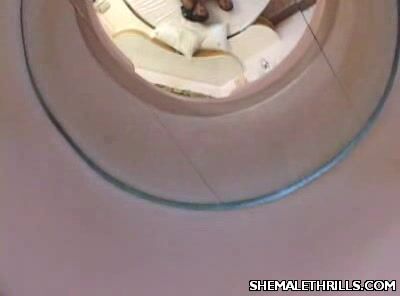This pretty dark skinned shemale lays naked in bed while playing with her shemale cock. Her partner walked in on her and took part by sucking off her cock. They got in a hot 69 cock gobbling before this shemale knobbed her partner's tight ass by making him ride on top.