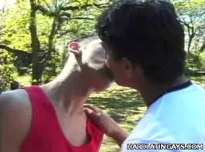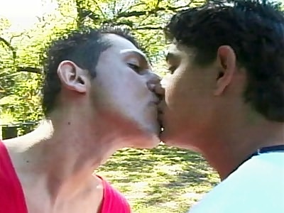 The scene follows two buffed gay Latinos into the woods where they began checking out each other's hard bodies and juicy looking pricks. Fabio Cesar and Armando Hoku stripped to their underwear and began taking turns examining each other's packages.