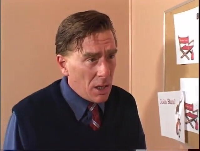 Blonde teen pussy licked and ass fucked by older man in the classroom.