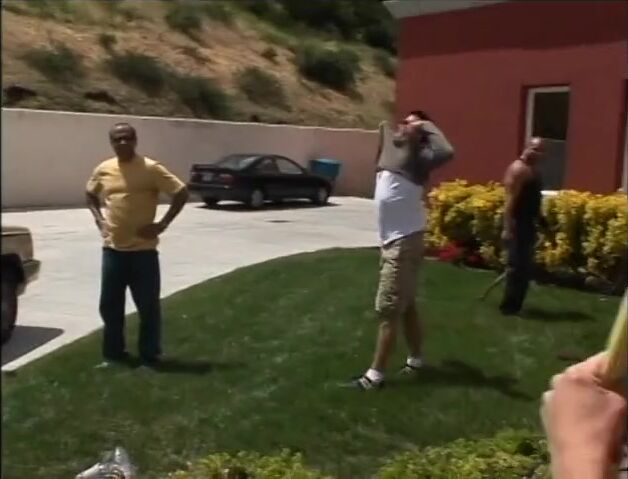 Bitch gets gang banged hard outside and gets her mouth filled with cum.