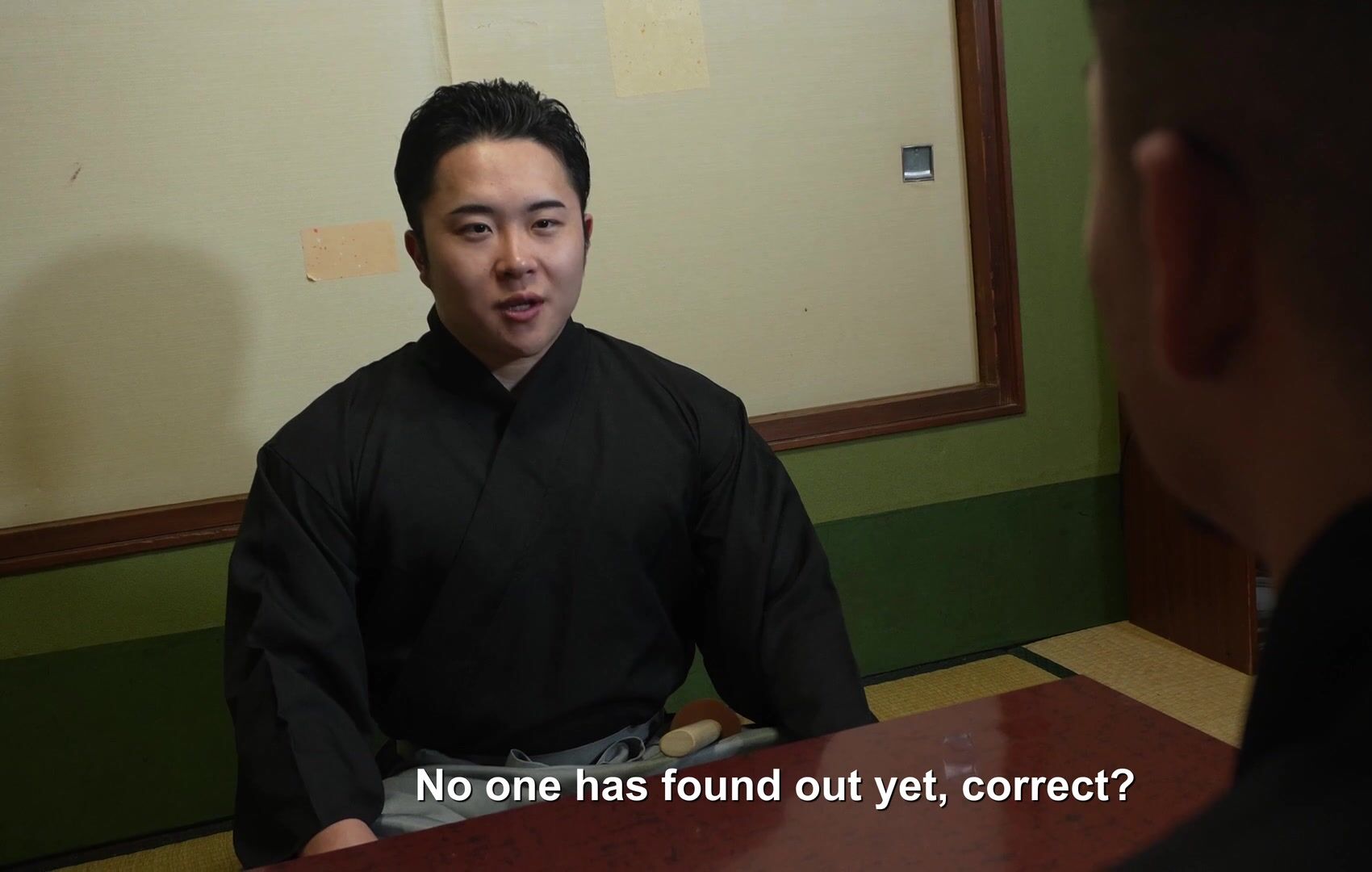 Handsome, chiseled Asian stud Hiroya is the new boy around the samurai training school, and he hides a shocking secret. He's secretly the lover of samurai master Kosuke. When he appears in Kosuke's quarters, anxious to rekindle their love, he has to make sure no one sees and figures out their hidden love. They immediately kiss deeply and passionately, two trained warriors who know and love each other, body, mind and soul. Hiroya moves down to nibble on Kosuke's sensitive nipples and muscular chest, and is rewarded by the samurai master offering him his mighty sword of manhood. He sucks down that fleshy sword, then Kosuke in turn makes love to Hiroya's own weapon of love. He rocks Hiroya's perfect body back onto his shoulders and dives his face into the young athlete's musky buttocks. The two secret lovers settle into a loving 69, each nursing on the other's swollen cock. Hiroya climbs up to straddle his love's muscular waist and grind his ass onto the stiff sword of Kosuke's passion. Moaning too loud to keep their love a secret, Hiroya revels in the hot muscular body plowing his innermost seat of pleasure. Kosuke can't help but speed up and drill in faster, and the two race toward a hot juicy climax. Stroking his love's hard cock, Kosuke milks out Hiroya's load then splatters his own seed into Hiroya's adoring mouth.
