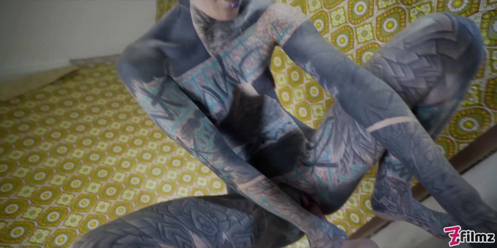 Alternative TATTOO model masturbating with big toy